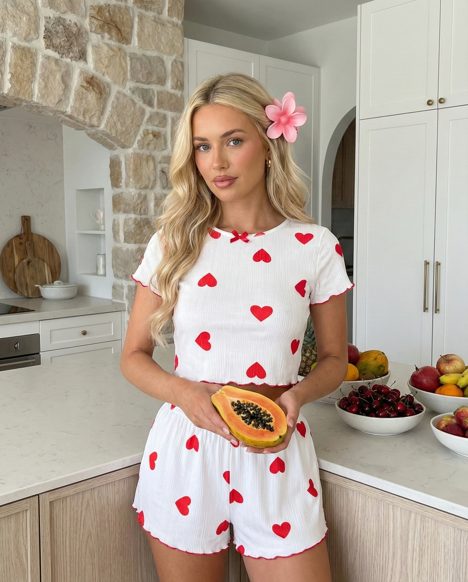 🧵 Stil: Esnek ribana kumaş, kalp baskılı ve kıvrımlı kenar detaylı.