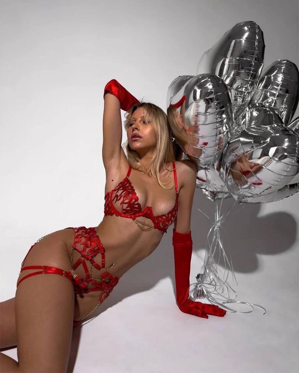 Ruby Chain: Zincir Detaylı Nakışlı Jartiyer Takımı